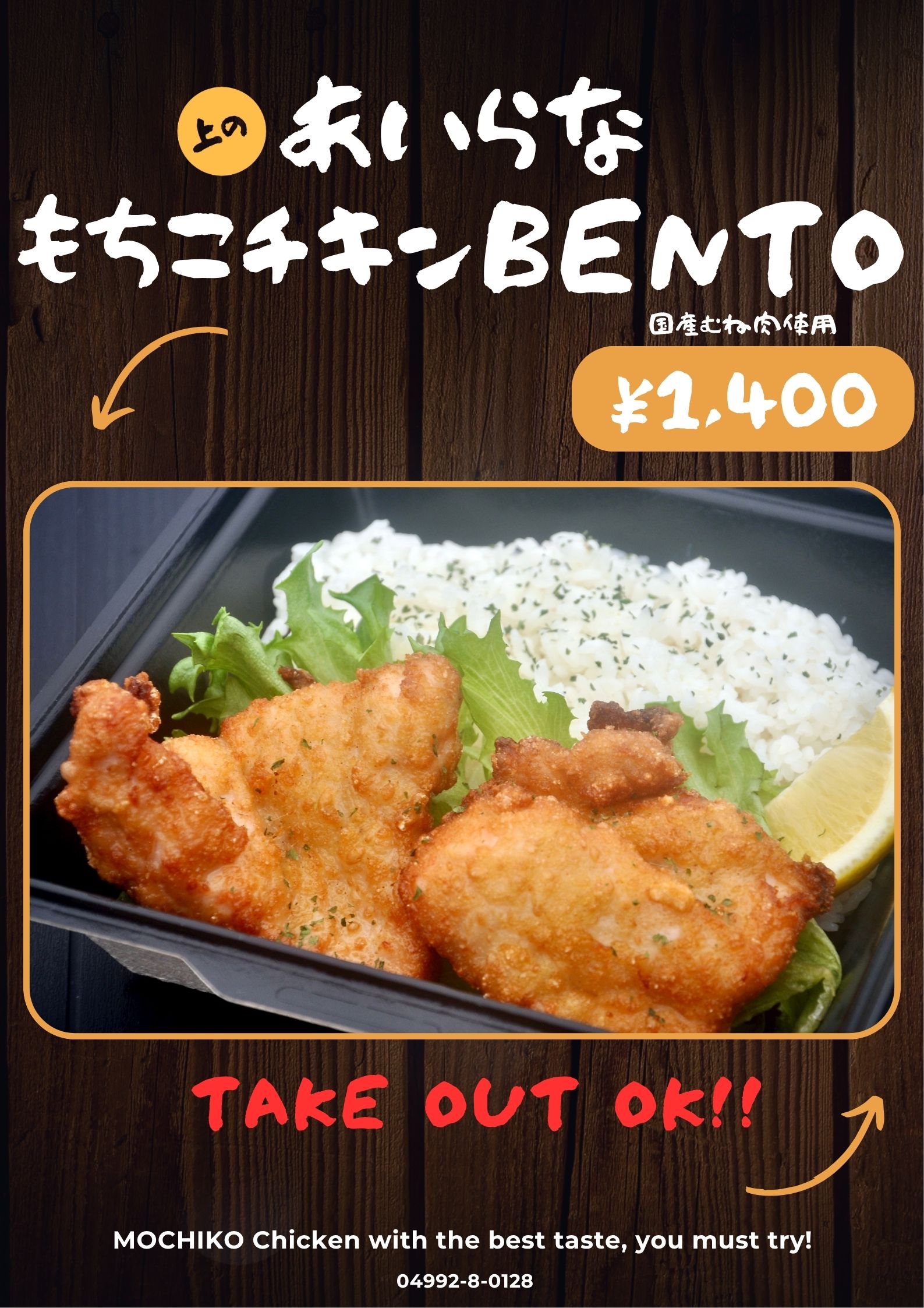 ・もちこチキンBENTO¥1,400※テイクアウトできます。